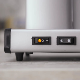 Det finns 2 knappar på maskinen. Den första är för att slå på och stänga av modellen. Den andra är att justera värmen på värmeplattan