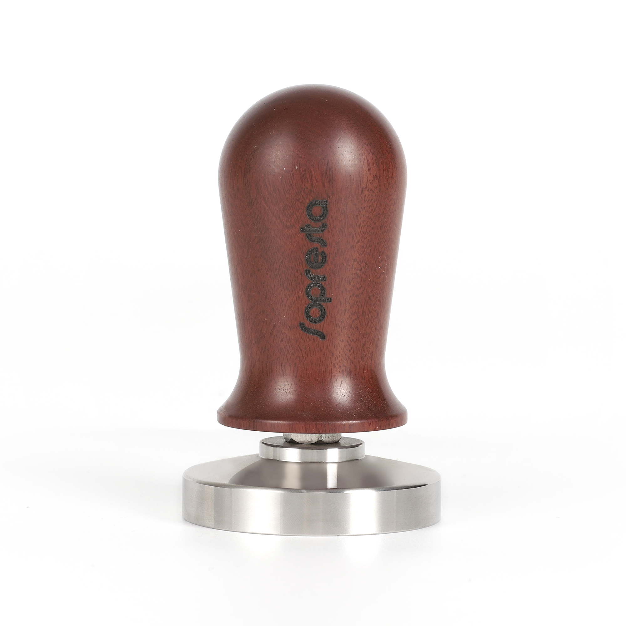 En Sopresta Kalibreret tamper med valnød håndtag er et værktøj, der bruges til at tampe kaffepulver i portafilteret på en espresso maskine. Det har en diameter på 54mm, så det passer ind i de fleste filterholdere på espresso maskiner, herunder Sage Barista serien.