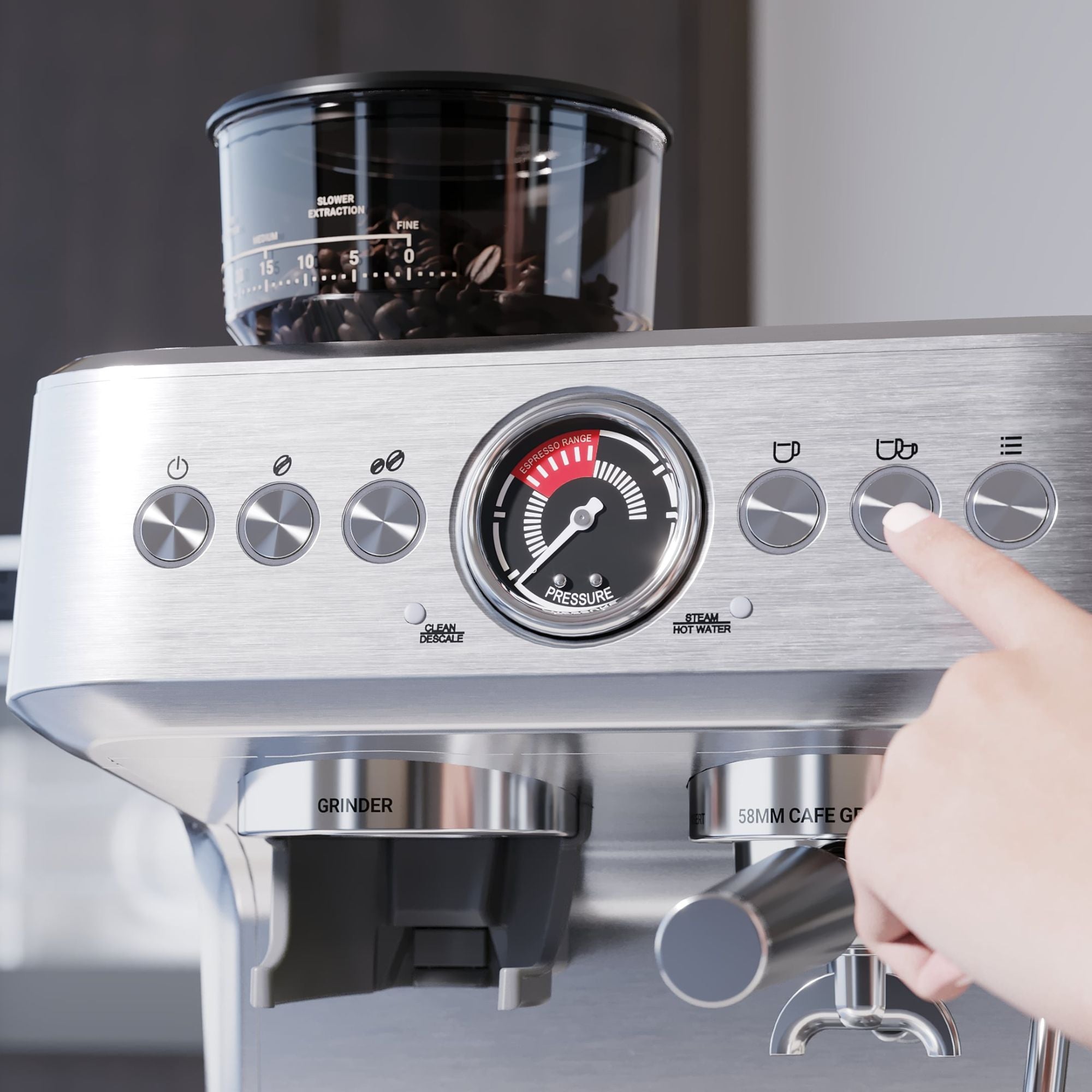 - 15-bar trykpumpe – sikrer fyldig crema og intens aroma.