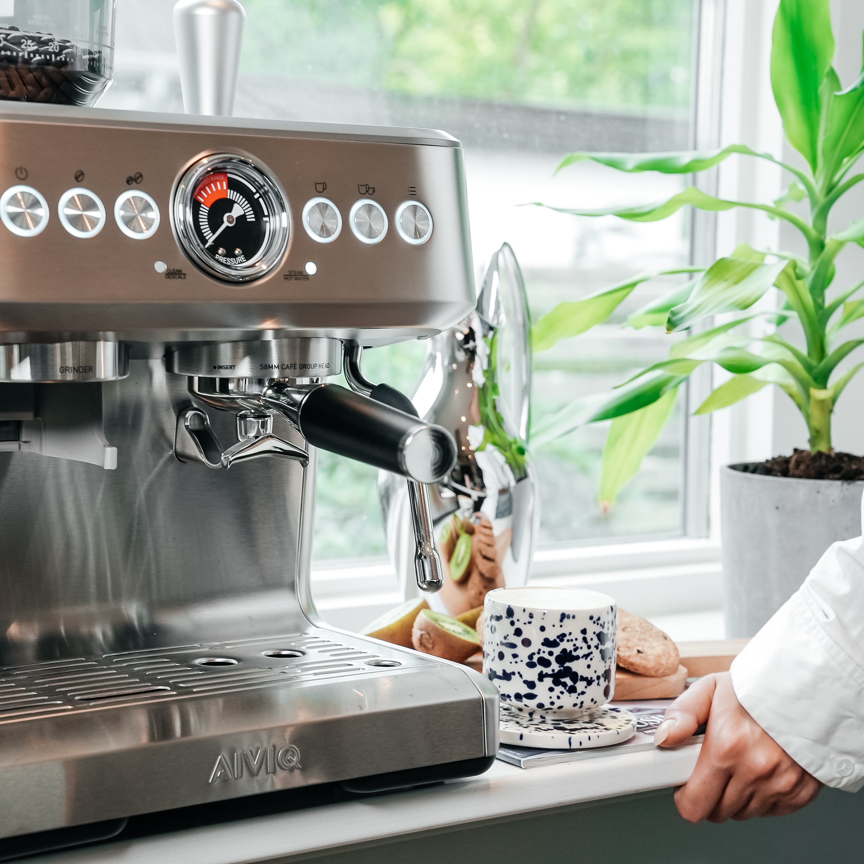 AIVIQ Aspire Brew (AME-361S) kombinerer professionel præcision og elegant design i én maskine. Det dobbelte opvarmningssystem gør det muligt at brygge espresso og skumme mælk samtidig, mens PID-temperaturkontrollen sikrer stabil og præcis varme for ensartet brygning. Den indbyggede koniske kværn med 30 indstillinger giver fuld kontrol over formalingsgraden, og den kraftige 15-bar trykpumpe frembringer espresso med intens aroma og cremet konsistens. Det tidløse ståldesign forener funktionalitet og holdbarhed i baristakvalitet.