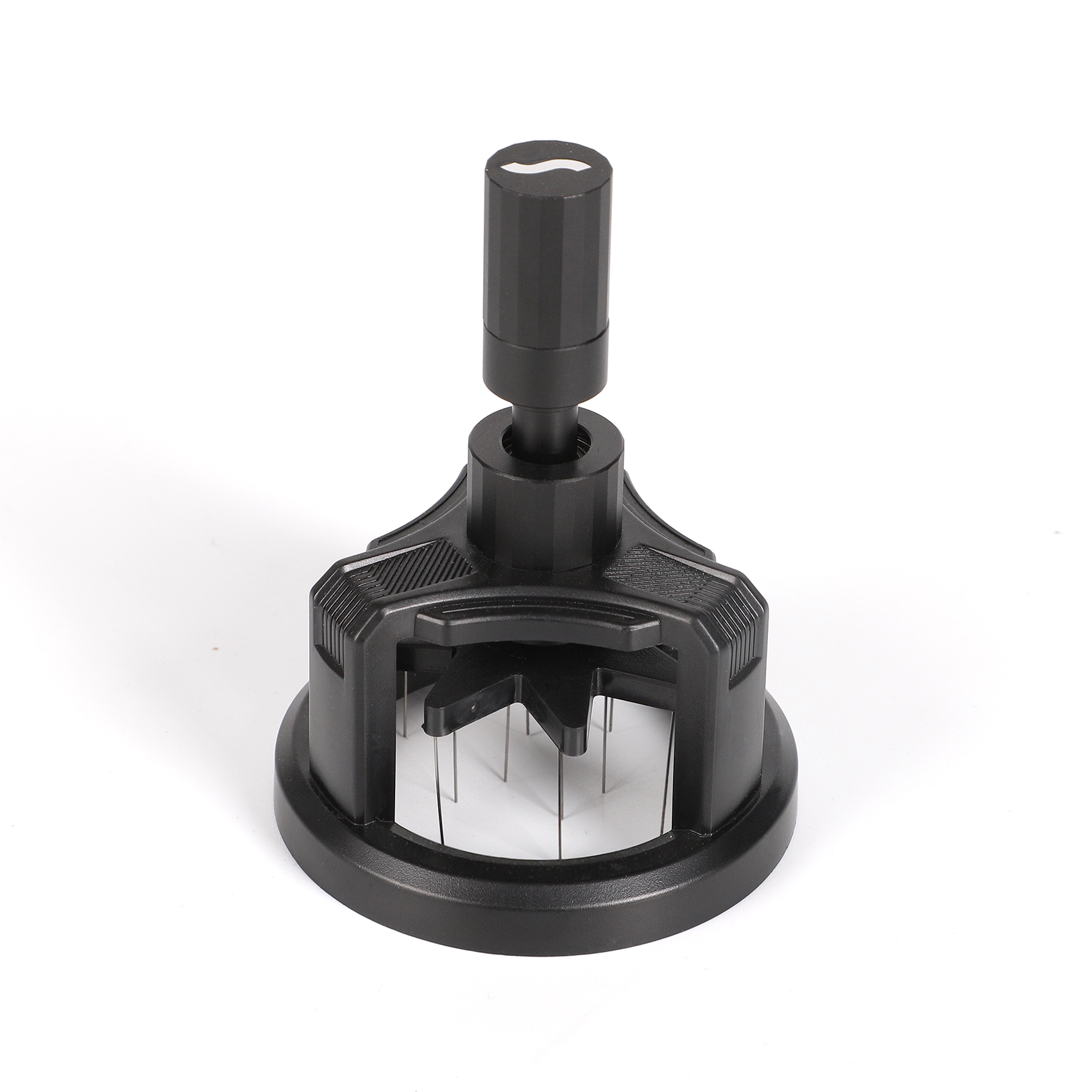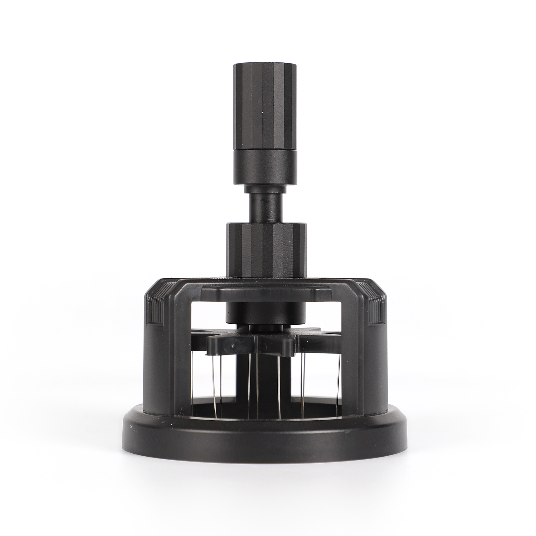 • Sopresta Premium roterende nålefordeler i 58 mm er skabt til baristaer, der ønsker maksimal kontrol over kaffefordelingen i filterkurven. Værktøjet placeres direkte oven på portafilteret, hvorefter de fine nåle roterer, når du drejer på toppen. Bevægelsen løsner klumper og sikrer en jævn, homogen fordeling i hele kurven, hvilket reducerer channeling og giver et mere stabilt espressoshot. Et hurtigt, præcist og baristavenligt værktøj til både begyndere og erfarne entusiaster.
